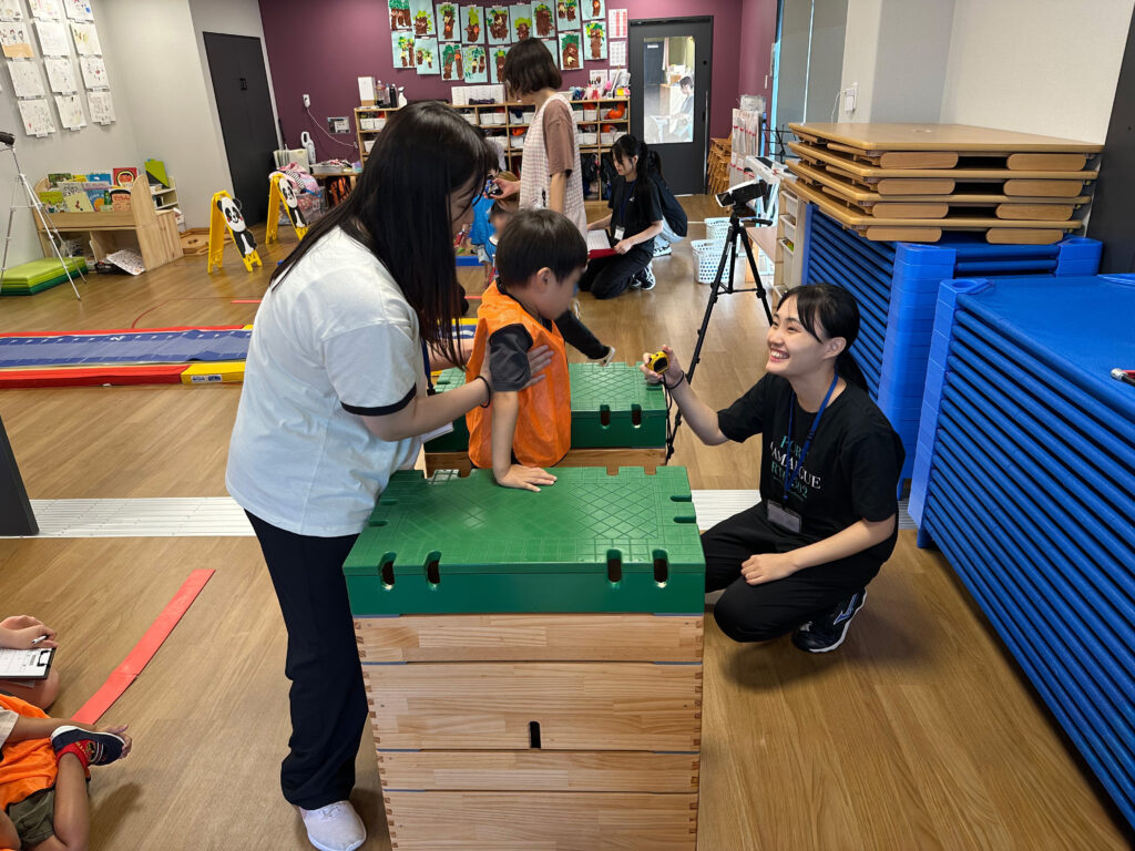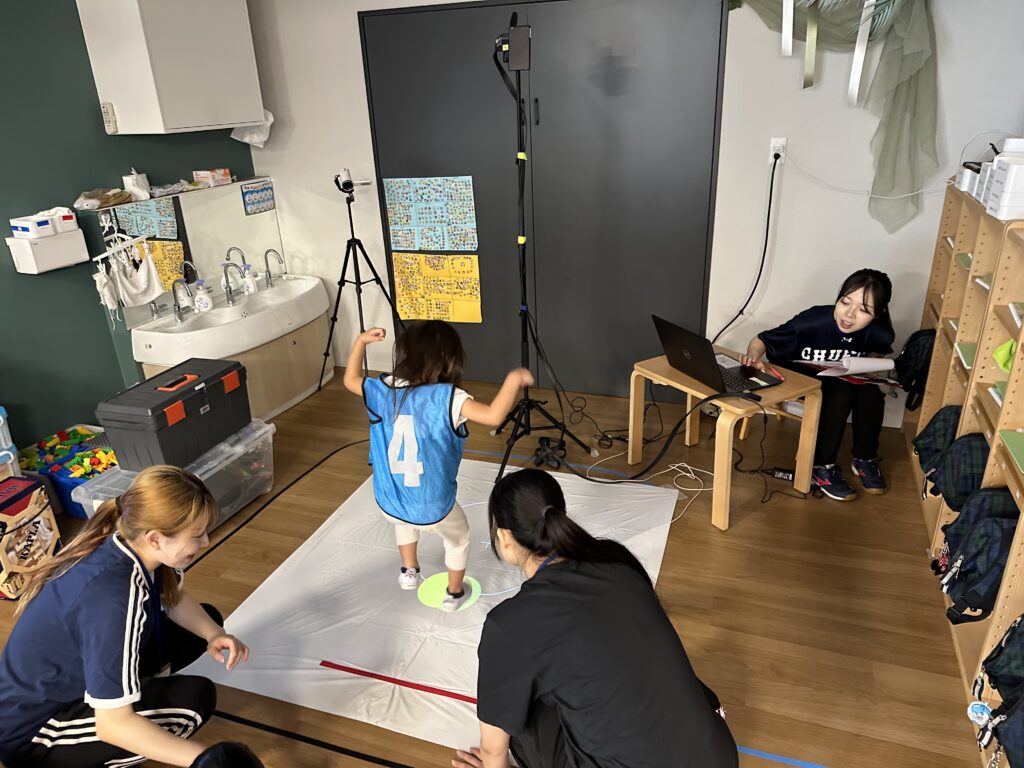 また、この取り組みはゼミ生の卒業研究の一環としても行われ、学生たちが協力して子どもへの説明や計測を担当しました。どのように声をかければ理解しやすいか、どうしたら集中して取り組んでくれるかを工夫しながら関わる姿が印象的でした。