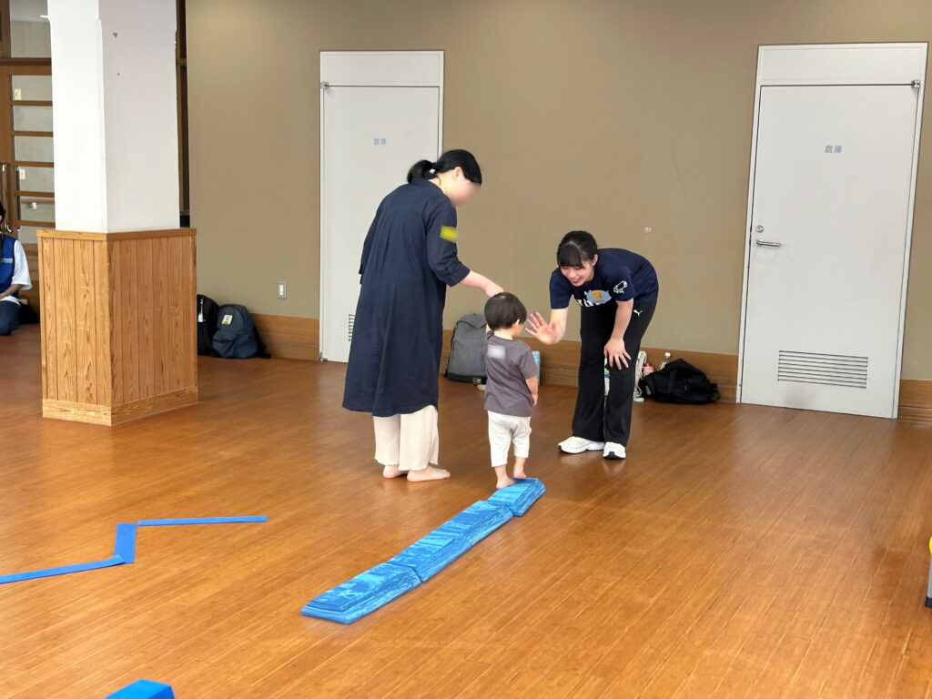 当日は、研究室のゼミ生も運営に参加しました。準備や進行のサポートに加え、子どもたちとの関わりを通して、発達段階に応じた運動あそびの工夫や難しさを実感する機会となりました。こうした体験は、学生自身の学びにもつながっています。
